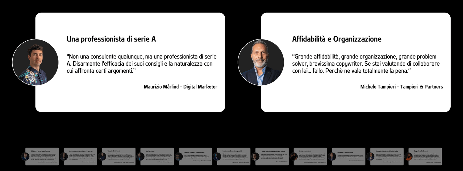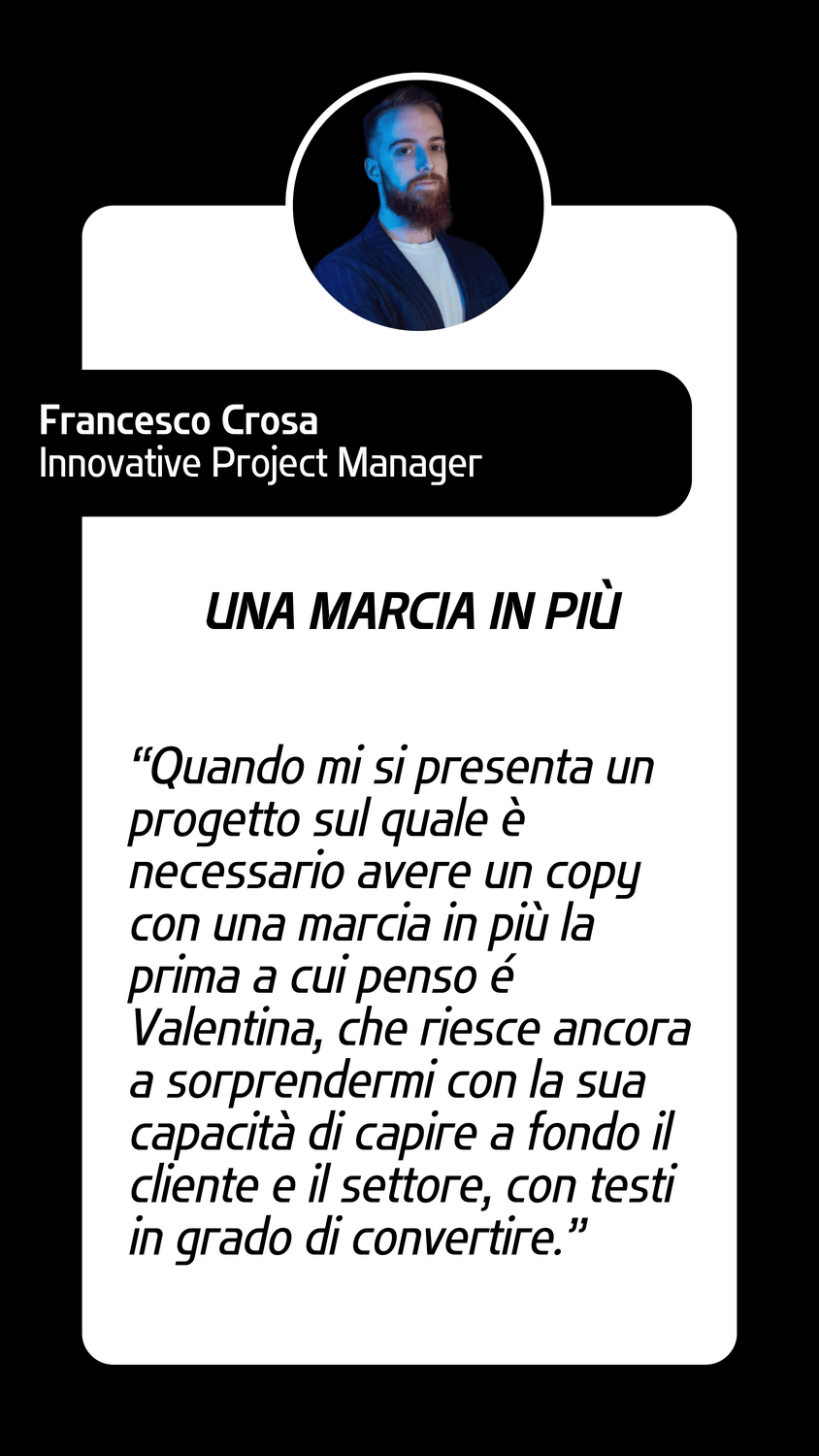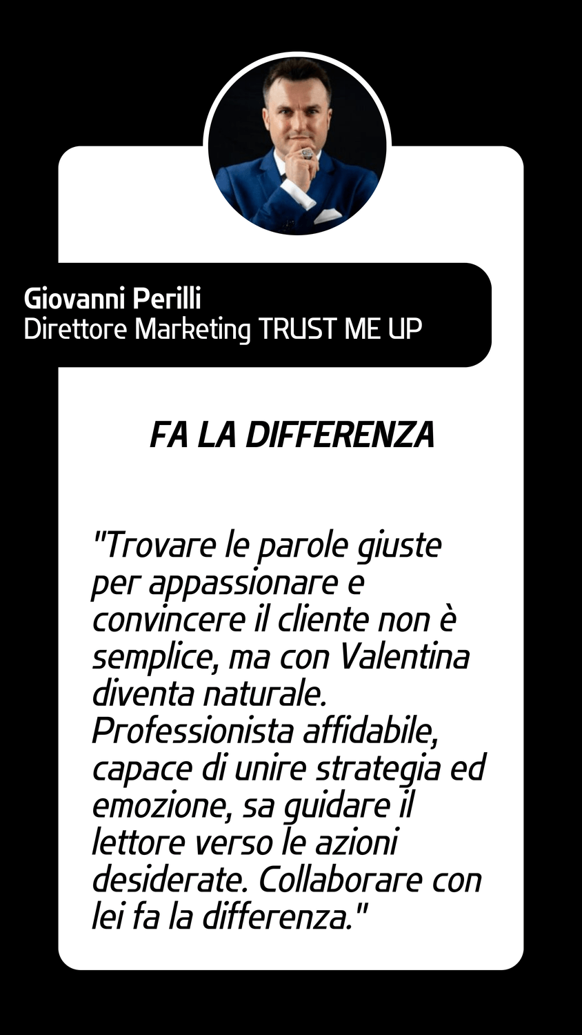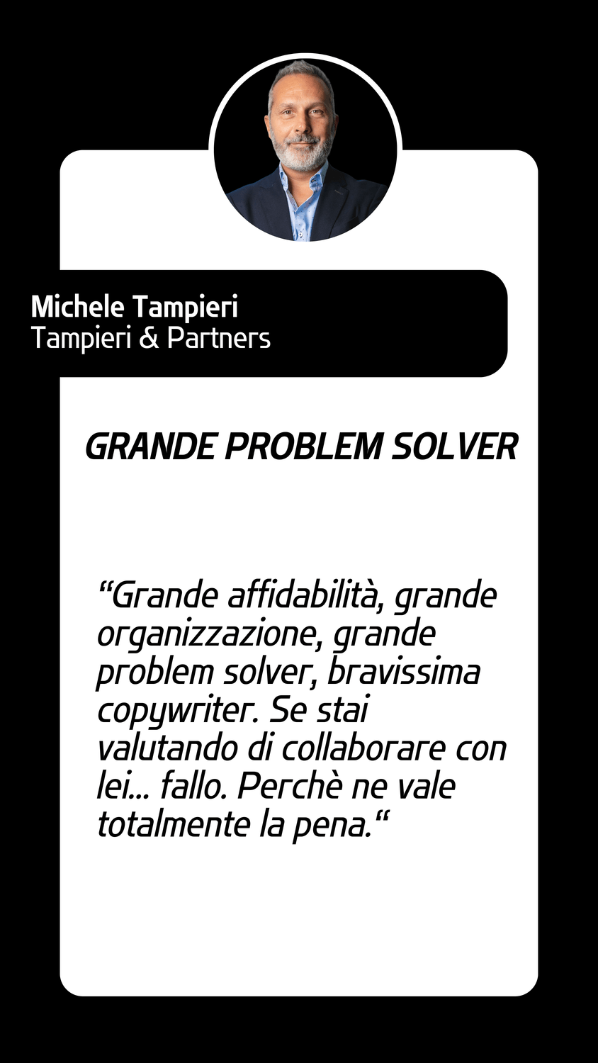 Sono una consulente marketing e copywriter, ma prima di tutto sono una persona che vuole essere capita.