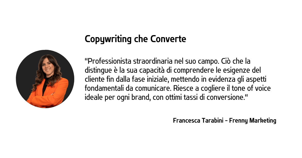 DEDICATO A: Chi vuole delegare la scrittura dei suoi testi a qualcuno che sa trasformare le parole in azioni. Chi vuole distinguersi davvero dai competitor, non solo sembrare diverso.
